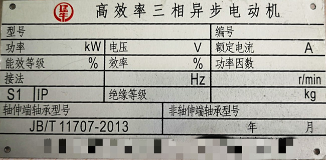 參照上圖中的電動機銘牌,在上面會詳細(xì)標(biāo)準(zhǔn)電動機的型號規(guī)格、生產(chǎn)編號、功率、電壓、額定電流、能效等級、效率值、絕緣等級、額定轉(zhuǎn)速、重量、出廠編號、生產(chǎn)日期等。